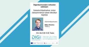 Aiheesta meille tulee puhumaan TIEKEn dataosaamisen kehittäjä Mikko Eloholma, joka on ollut kehittämässä pk-yritysten tietosuojakäytäntöjä, tekoälyn käyttöä ja datavastuullisuutta sekä hankkeissa että kouluttajana.
